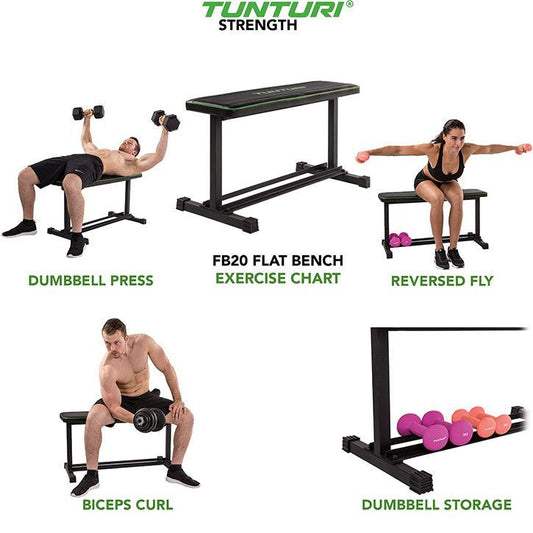 Flachbänke und Hanteln im Set