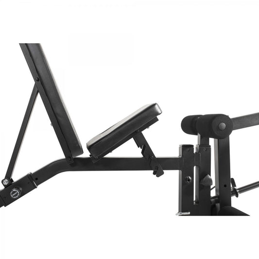 - Lieferung mit umfangreichem Zubehör wie Lastzugstange, Bizepsstange, Push-Bar-Kabelzugstange, Einzelgriffe, Fussmanschetten, Beinpolster und vielem mehr
