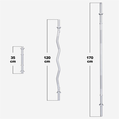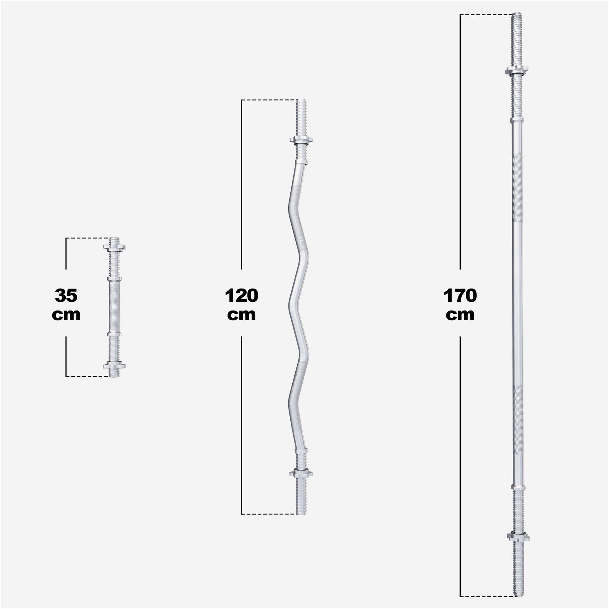 - Enthält Langhantel-, SZ-Curl- und Kurzhantelstangen
