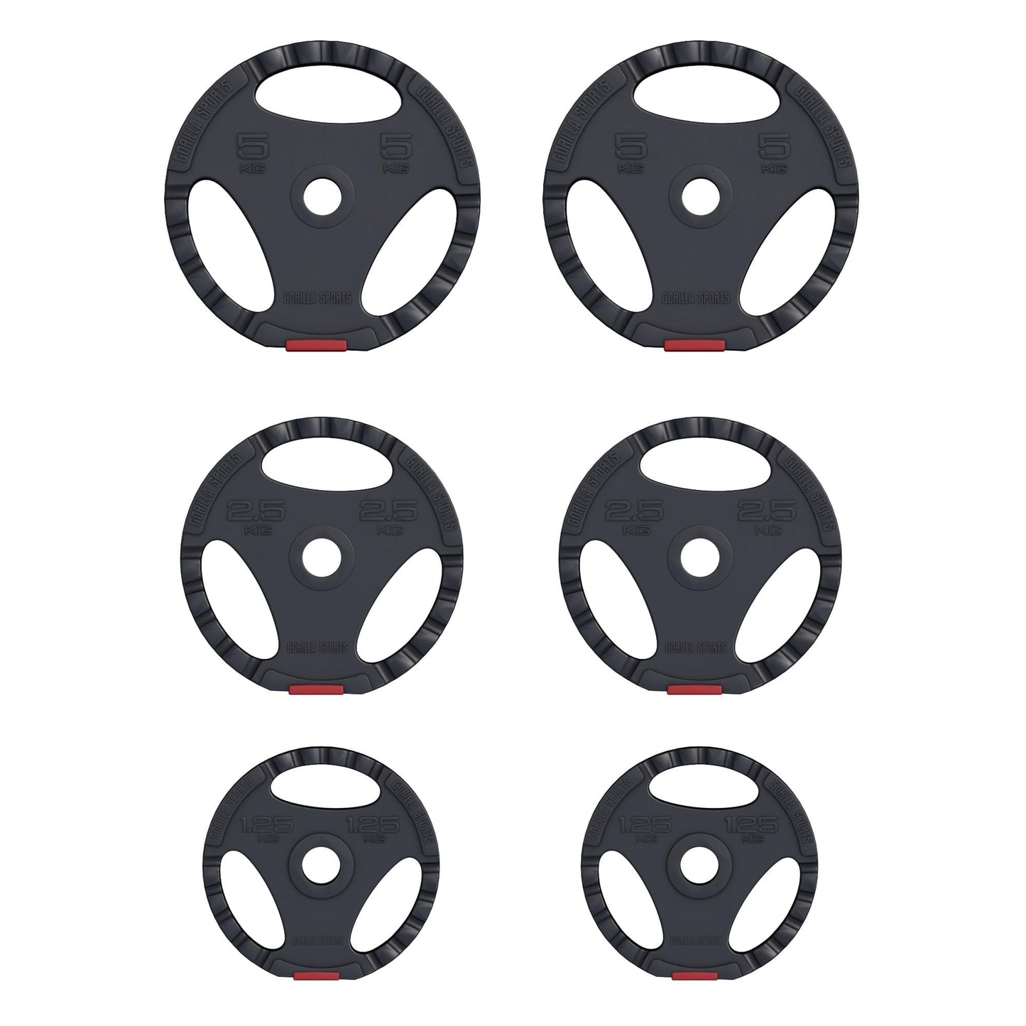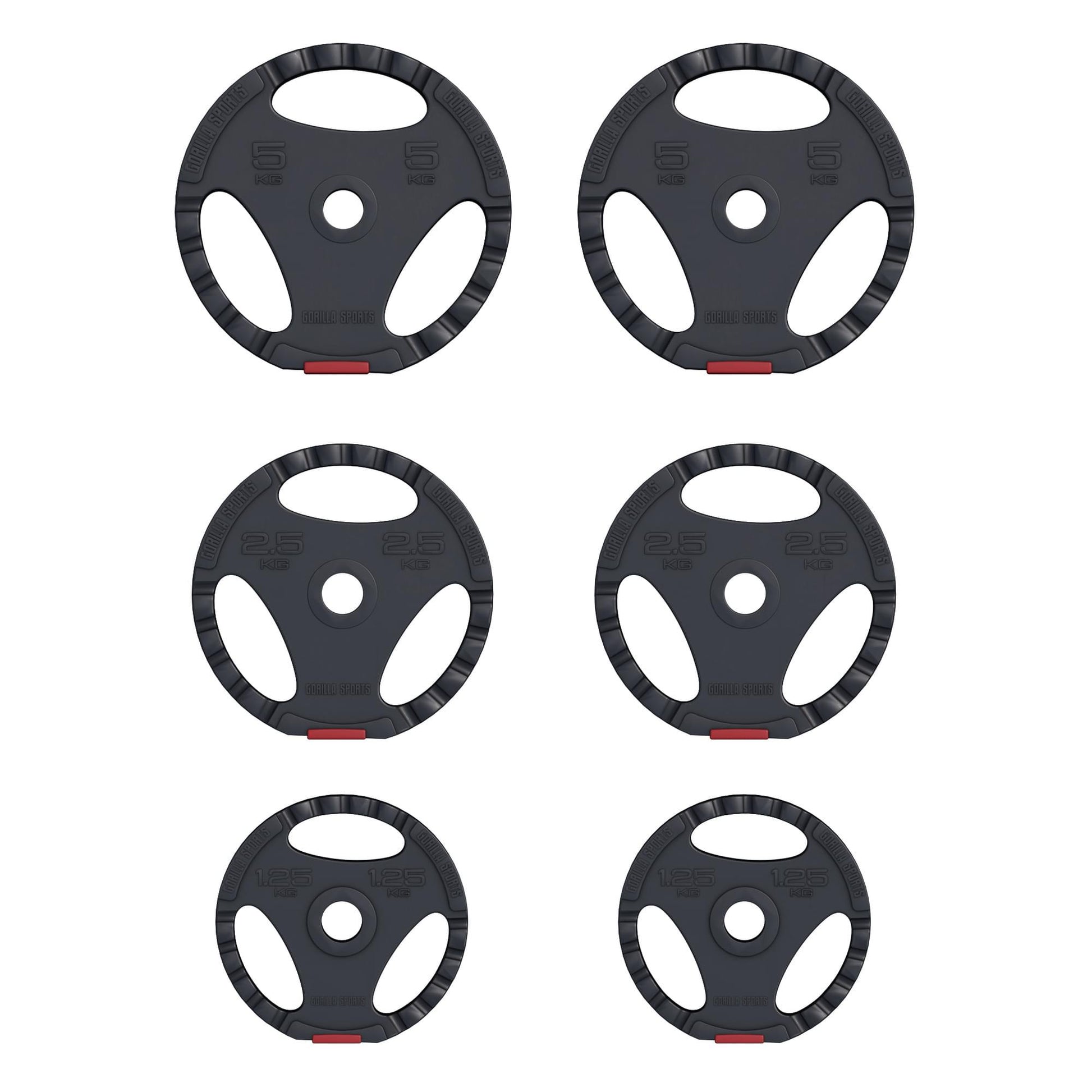 - 2 disques de poids de 1,25 kg chacun (diamètre 18,5 - 19,1 cm, largeur 3,4 cm)