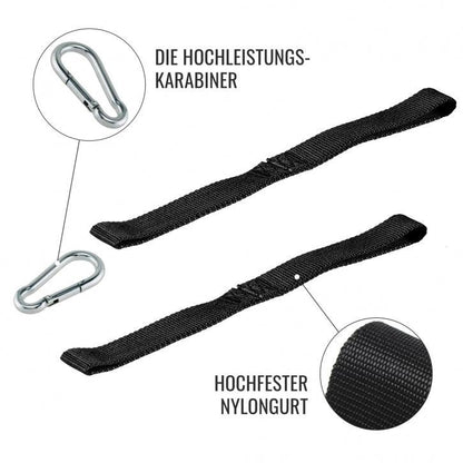 - Lieferumfang: 2 Befestigungsschlaufen inkl. Karabinerhaken