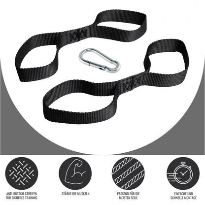 Wenn du zu den sportlichen Enthusiasten gehörst, die gern einmal im Training neue Wege gehen oder sich an das eigene, persönliche Limit pushen wollen, dann bist du bei dem Schlaufenset genau richtig. Als Ergänzung zu deinem vorhandenen Equipment sind die Schlaufen beliebte Trainingspartner, vor allem, wenn es darum geht, Griffe oder beispielsweise Battle Ropes zu befestigen.