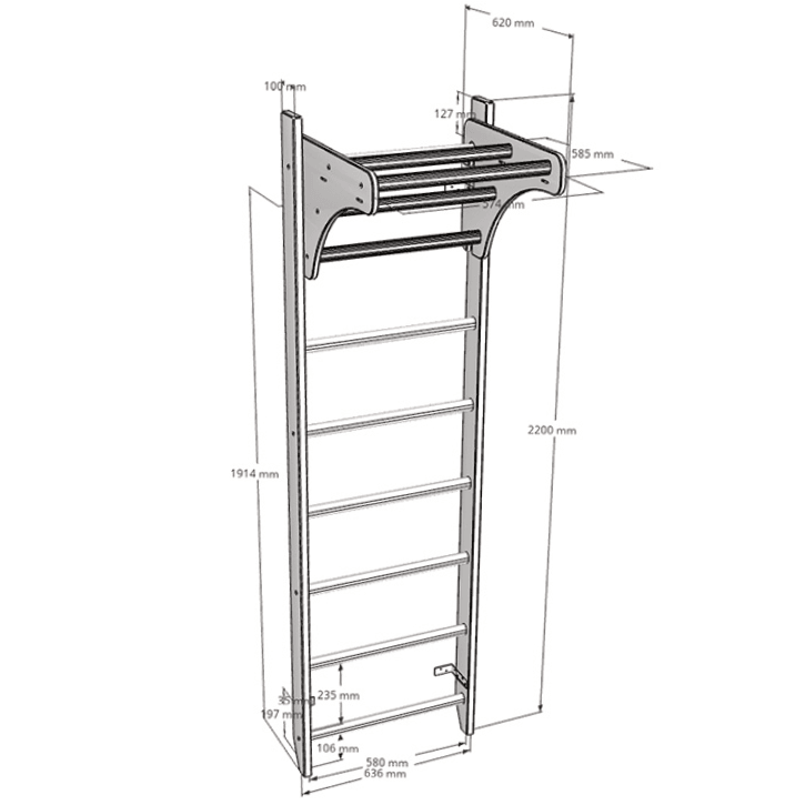 Gefertigt aus Buchenholz fügt sich die Sprossenwand optimal in deine Wohnumgebung ein und überzeugt dabei mit einer besonders platzsparenden Bauweise. Da für die Installation der Sprossenwand nur eine Raumhöhe von 230 cm erforderlich ist, passt diese in nahezu jeden Raum und sorgt dabei für eine einzigartige Atmosphäre.