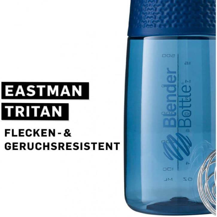 - Geruchsresistenter Eastman Tritan: Der Sportmixer ist aus BPA-freiem Eastman Tritan. Das Material ist geruchsabweisend, im oberen Fach spülmaschinenfest und stossfest. Du wirst nie wieder den Shake von letzter Woche schmecken, noch riechen.