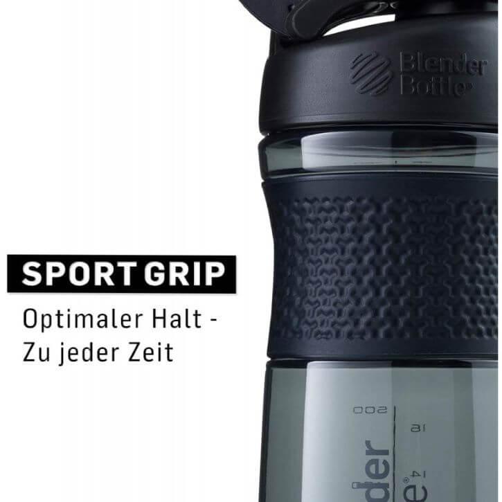 - SportGrip: Mitnehmen, Schütteln, Trinken - auch beim Joggen. Der SportGrip bietet einen festen Halt, in jeder Situation. Auch bei nassen oder schwitzigen Händen ist das Mischen des Getränkes ein Kinderspiel.