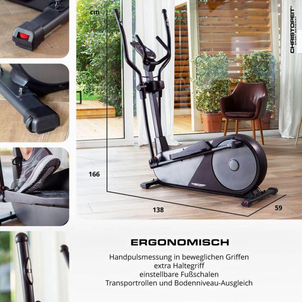 Die Kombination aus Laufband, Heimtrainer und Stepper, sowie der ellipsenförmige Bewegungsablauf vorwärts und rückwärts, mit ergonomisch optimierten Griffstangen, sorgen für ein besonders gelenkschonendes Training der Bein-, Gesäss-, Hüft-, Oberschenkel- und Armmuskulatur.