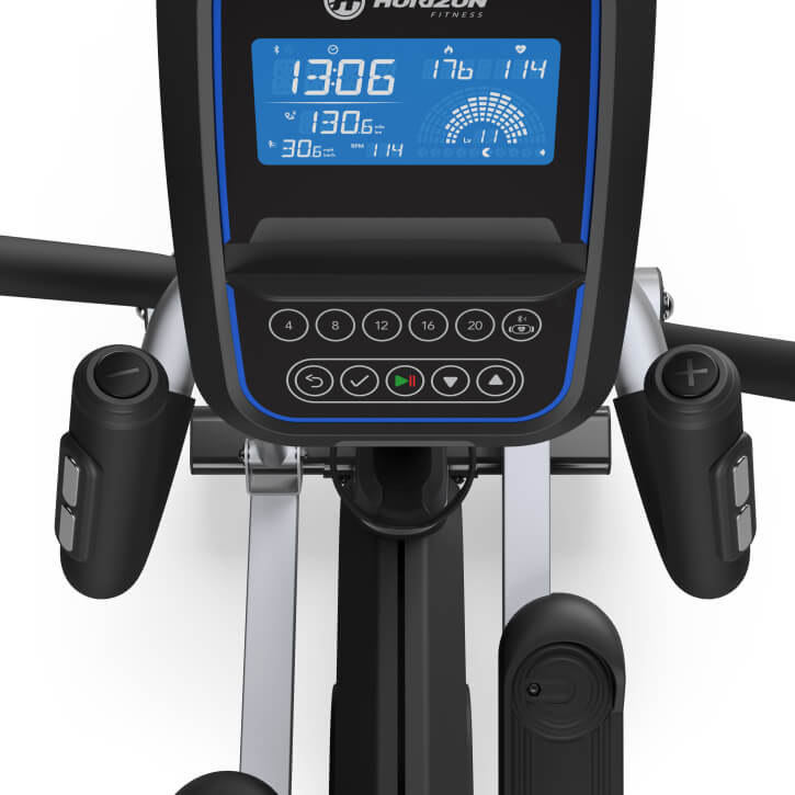Sanft, aber dennoch effizient, da der gesamte Körper zum Einsatz kommt. Und dank der kompakten Masse sowie Transportrollen findet er Platz in jedem Zuhause. Die Konsole bietet intuitive Bedienelemente und ein hinterleuchtetes LCD-Display, auf dem du mühelos deine Trainingsdaten siehst. Via Bluetooth-Verbindung erweiterst du dein Trainingserlebnis mit der exklusiven Horizon-App @Zone oder anderen beliebten Fitness-Apps auf deinem Smartphone oder Tablet.