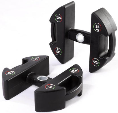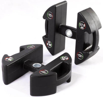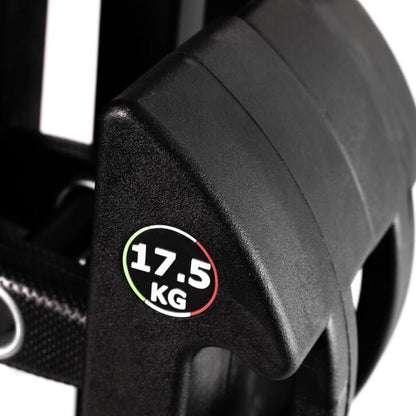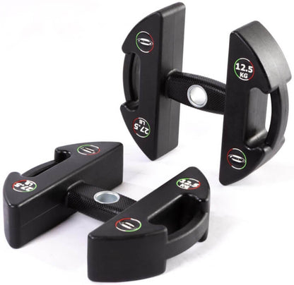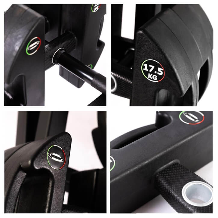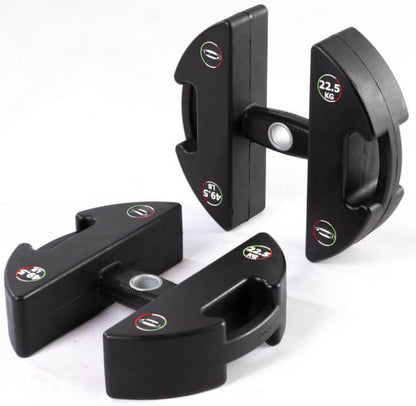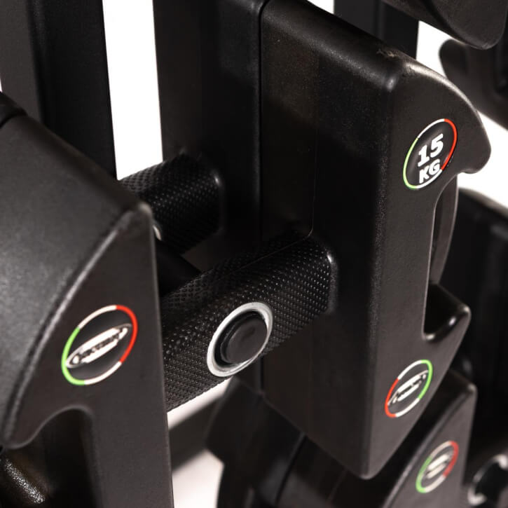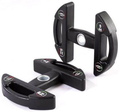 Die Discubrio-Weight-Module bestehen aus einer kompakten, robusten Gussstahleinheit mit geruchlosem PU-Gummi und einem ergonomisch-ellipsoid geformten Griff für maximalen Komfort und Balance. Durch sorgfältiges Design haben wir den Grip und das Gefühl zwischen Gerät und Nutzer verbessert, was zu perfekter Balance und Kontrolle führt und die Muskelbeteiligung optimiert.
