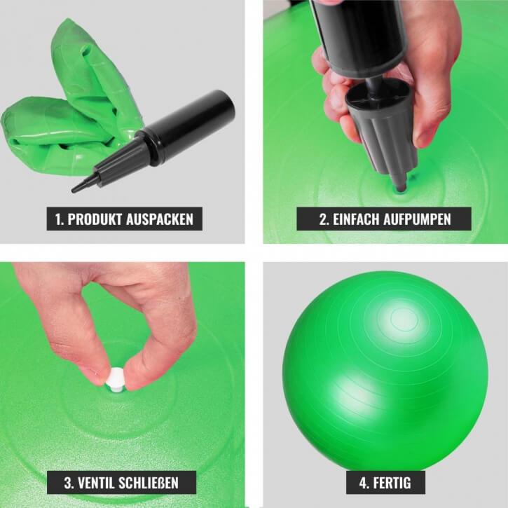 Im Lieferumfang der Gymnastikbälle ist ein Blasebalg zum Aufblasen enthalten.