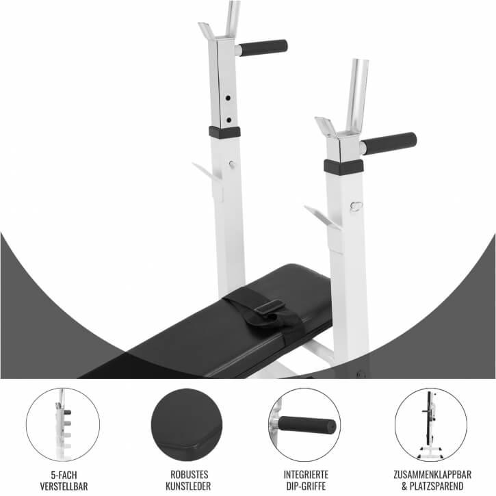 - 5-fach verstellbare Hantelablage (Ablagehöhe von ca. 78 - 99 cm)