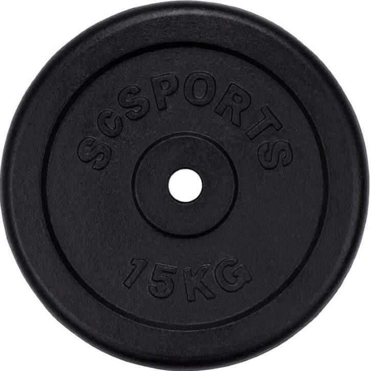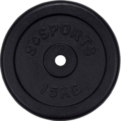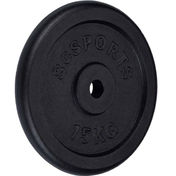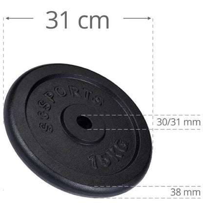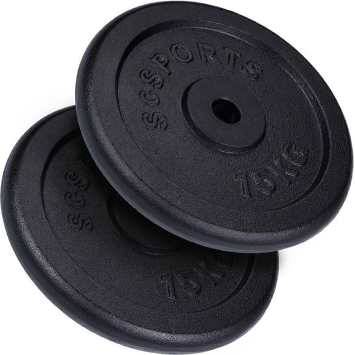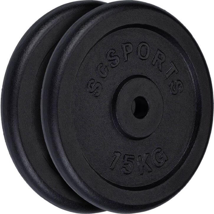 - Zwei Scheiben à 15 kg aus massivem Gusseisen