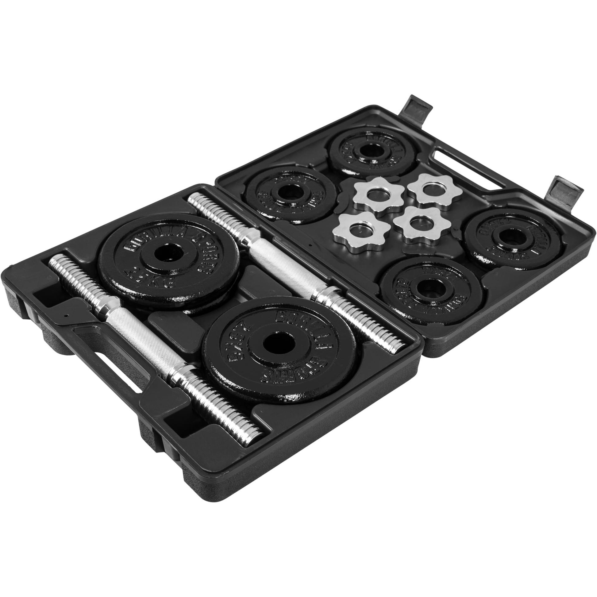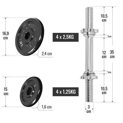 So kannst du dein Trainingsgewicht flexibel kombinieren – bis zu 17,5 kg pro Hantelstange oder 20 kg gesamt. Ideal für vielseitige Übungen für Arme, Schultern, Rücken und Bauch.