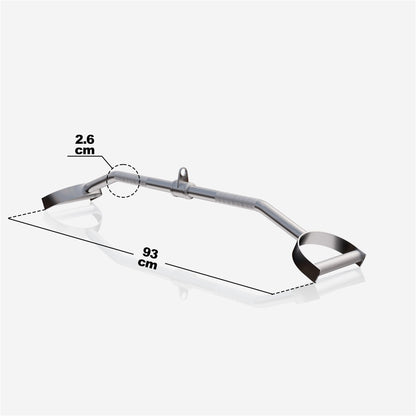 Mit der Latzugstange mit Hufgriff gebogen bringst du Abwechslung in dein Rückentraining an der Latzugstation. Sie ist hochwertig verchromt und in Studioqualität gefertigt. Die beiden Hufeisengriffe sind für perfekte Ergonomie drehend gelagert. Darüber hinaus verfügt die Stange über rutschfeste geriffelte Griffflächen im inneren Bereich. So kannst du komfortabel zu engen Latzügen wechseln, ohne zwischendurch die Stange auszutauschen.