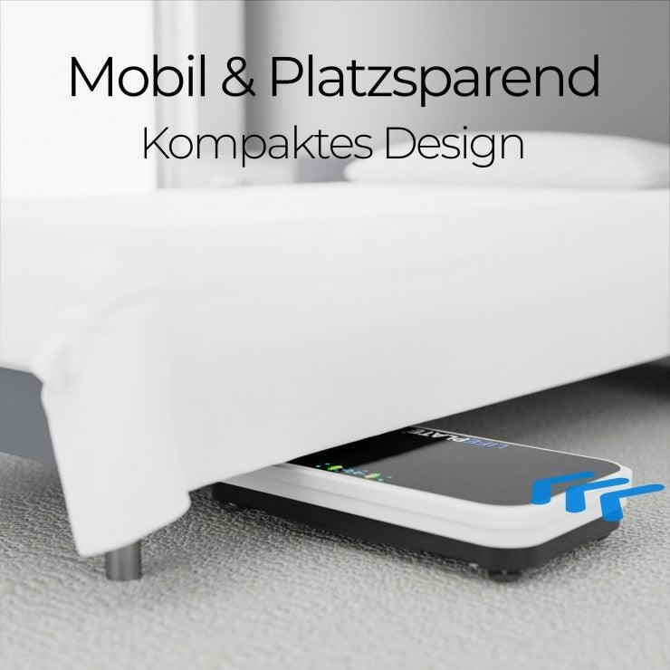 Die LifePlate 2.0 eignet sich ideal für dein Fitnesstraining zuhause und findet Dank der kompakten Aufstellmasse in jedem Zimmer genug Platz. Nach dem Training sorgt die ultra-niedrige Bauhöhe von nur 12 cm dafür, dass sich die LifePlate 2.0 sehr schnell und einfach verstauen lässt. Das Eigengewicht von nur 13.5 kg macht auch den mobilen Einsatz zum Kinderspiel.