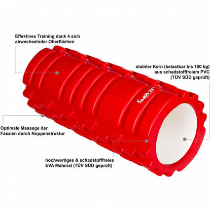- WIRKUNGSVOLL: durch das spezielle Oberflächenprofil können Verklebungen des Bindegewebes (Faszien) gelöst und dadurch Muskelbeschwerden vorgebeugt und behandelt werden.
