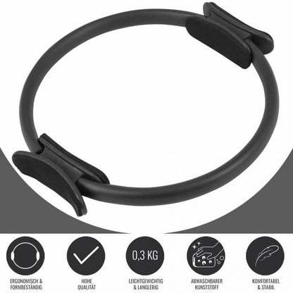 Pilatesring: Kompakt und effektiv, sorgt der Ring für sanften bis moderaten Widerstand bei Ganzkörperübungen. Optimal, um Muskulatur gezielt zu aktivieren – ganz ohne schwere Gewichte.