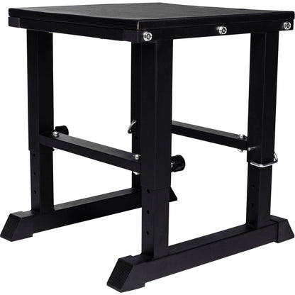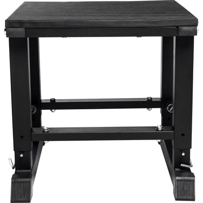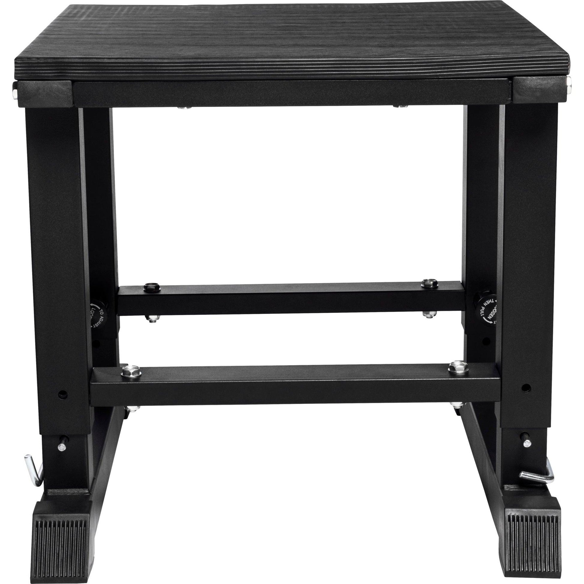 Im Gegensatz zu ihren feststehenden Verwandten ist diese Plyobox verstellbar: Das obere Element lässt sich in fünf verschiedenen Höhen arretieren und mit stabilen Pins aus Metall sichern. Und für Trittsicherheit im Eifer des Gefechts sorgen die rutschfest gummierte Oberfläche und die Standfüsse aus Gummi.