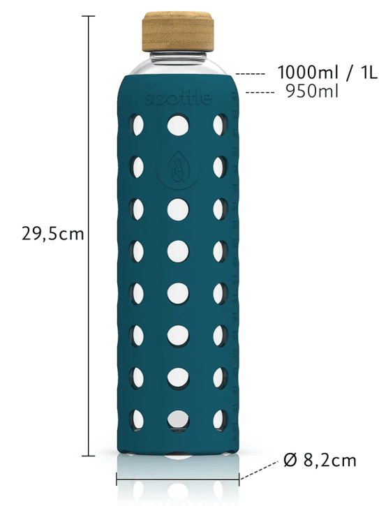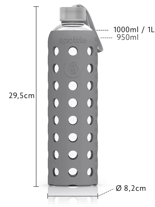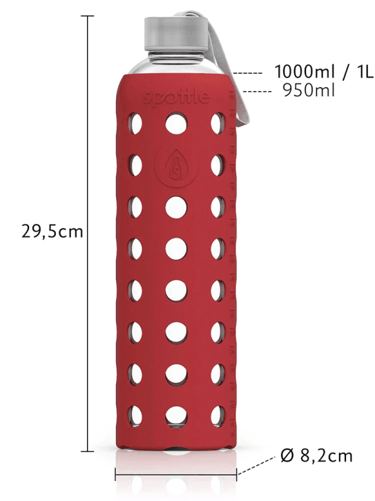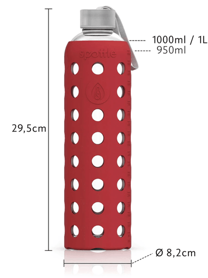 SPOTTLE Glasflasche (1 L) mit Silikonhülle