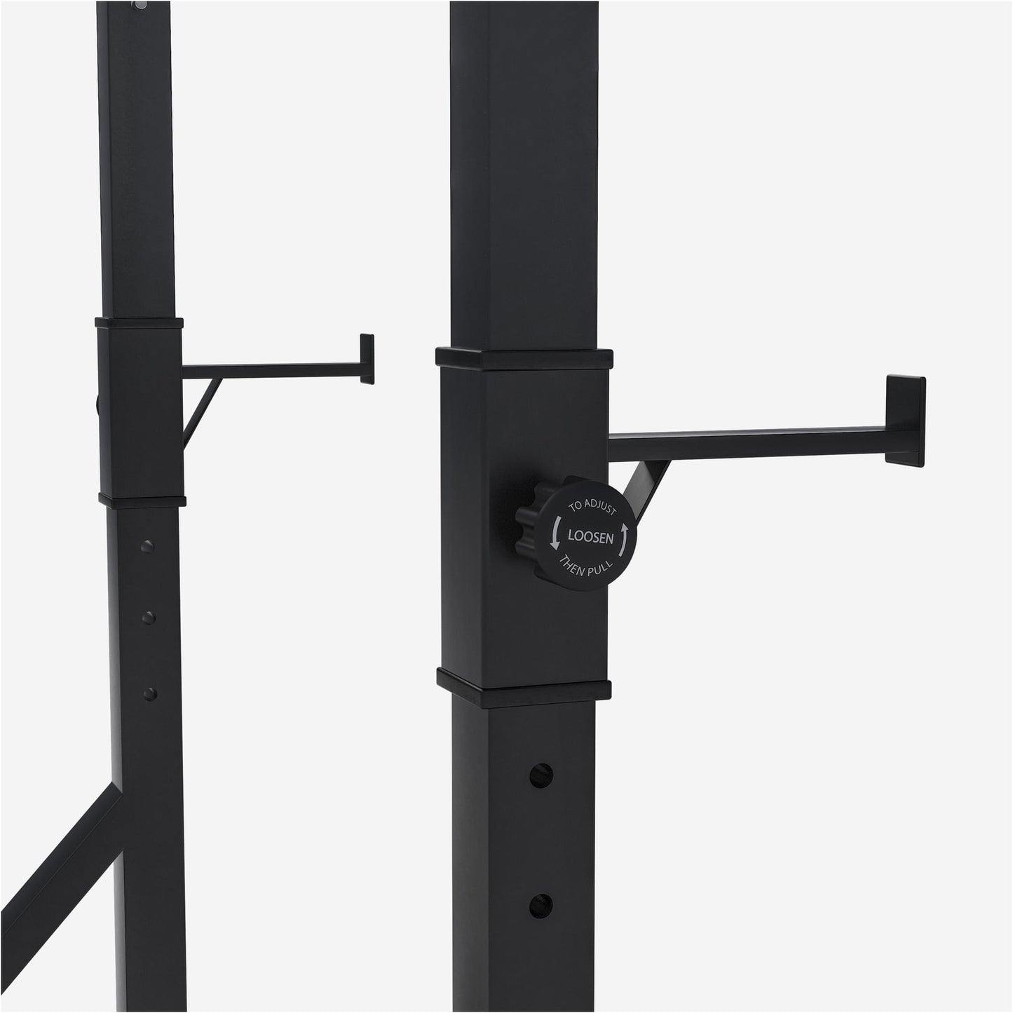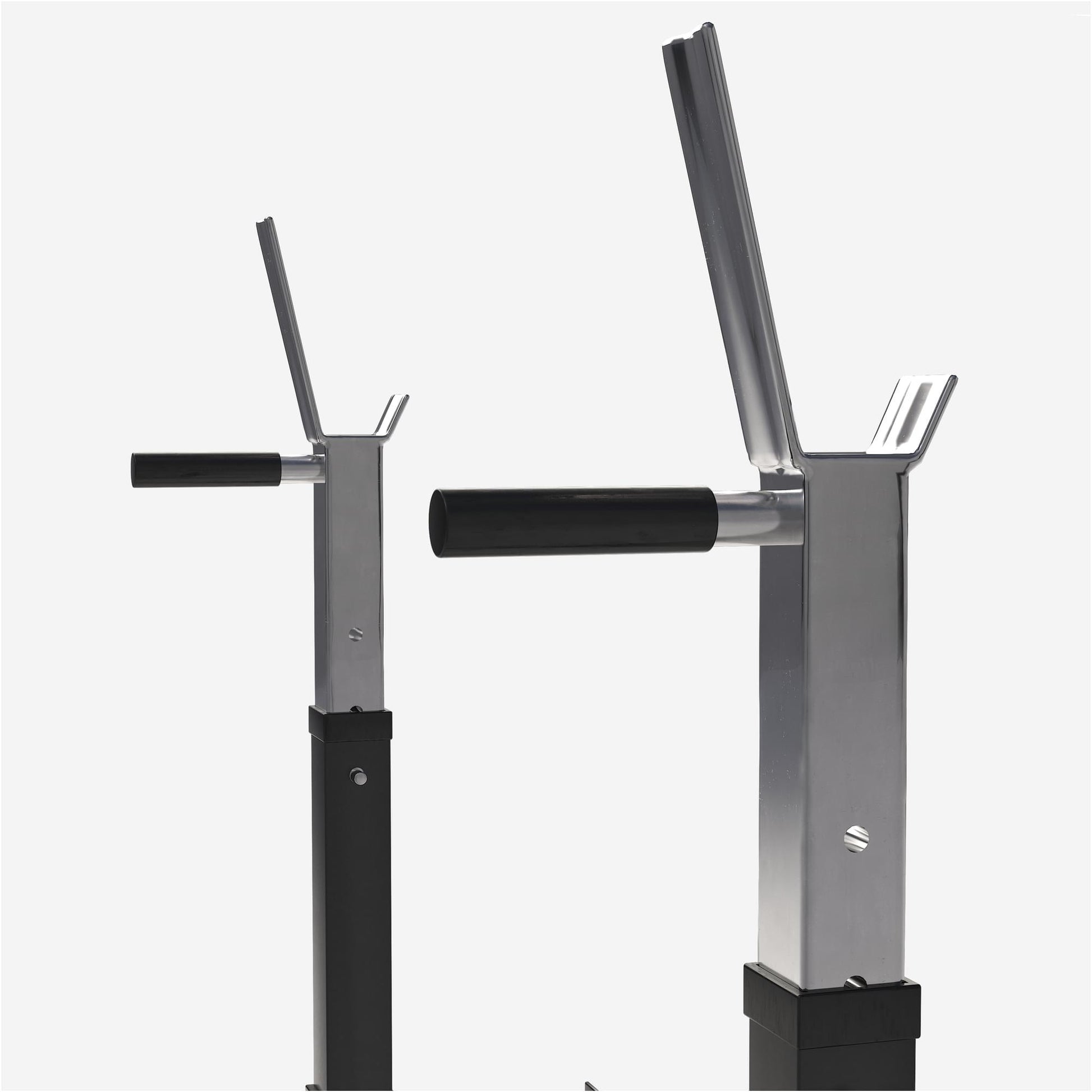 Robust, stabil und vielseitig – all das sind Attribute unseres Kniebeugenständers. Das Besondere an dem Gerät ist, dass Du die Ständerbreite in insgesamt vier Stufen definieren kannst. So ist sichergestellt, dass Du immer genau die richtige Einstellung für das passende Training hast und Dich vollends auf das wirklich Wichtige konzentrierst: Technik, Feinheiten und Dein Workout.